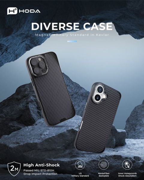 Chất liệu TPU cao cấp kết hợp khung PC cứng cáp giúp giảm chấn khi rơi rớt. Ốp lưng Hoda Diverse Case with Magnet cho iPhone bảo vệ toàn bộ thân máy và cụm camera.